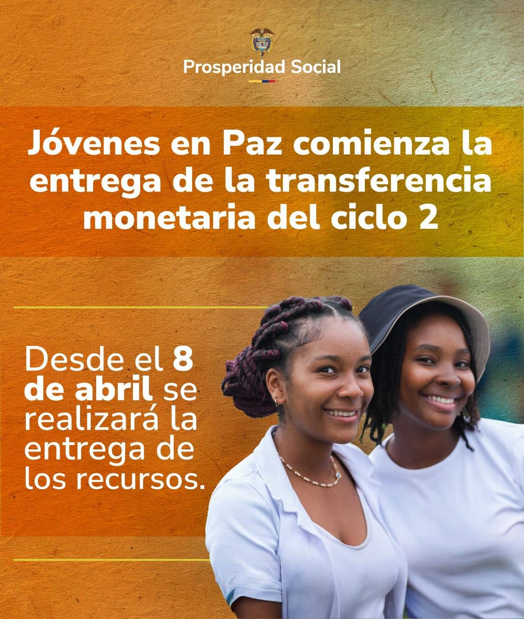 Bogotá D. C., 7 de abril de 2026. Prosperidad Social iniciará, a partir del 8 de abril, la entrega de la transferencia monetaria condicionada para los participantes del programa Jóvenes en Paz. En este segundo ciclo del año, 12.623 jóvenes recibirán los recursos. La entidad invertirá más de 13.619 millones de pesos. Los participantes deben … Leer más