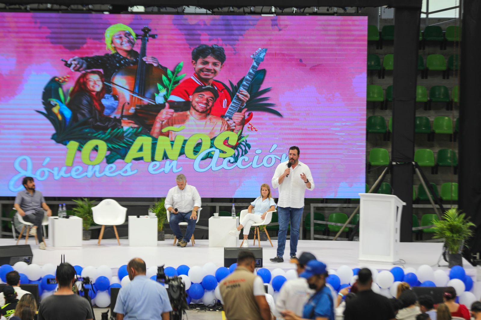 Barranquilla, Atlántico. Julio 23 de 2022. Dos hitos de la mayor inversión social hecha en la historia del país se pusieron en escena este sábado en Barranquilla: la celebración de los diez años del programa Jóvenes en Acción y la presentación del beneficiario número 4 millones de Ingreso Solidario. El presidente de la República, Iván Duque, y el director (e) de Prosperidad Social, Pierre García Jacquier, encabezaron esta celebración, en la que expusieron los resultados de lo que llamaron una revolución social contra la desigualdad y la pobreza. Acompañaron la celebración el alcalde de Barranquilla, Jaime Pumarejo, y la gobernadora de Atlántico, Elsa Noguera.