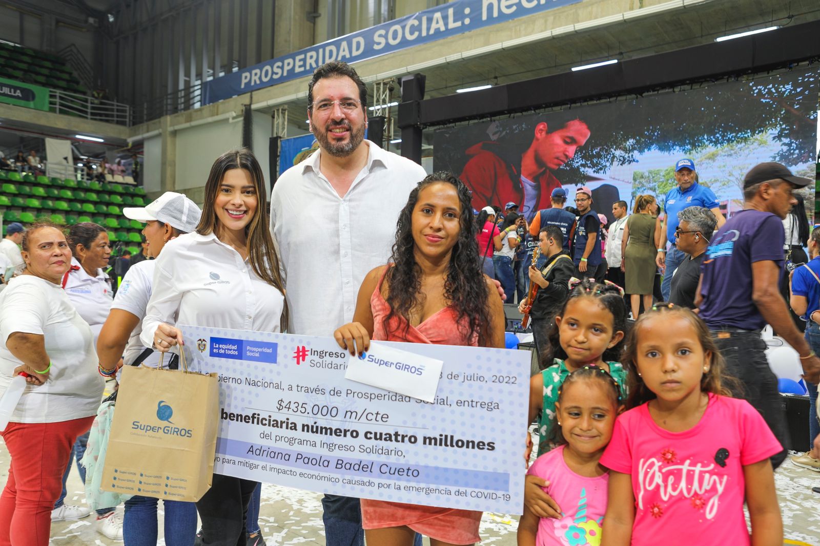 “Es emocionante presentar aquí a Adriana Paola Badel Cueto, la titular del hogar número 4 millones, de los beneficiarios de este programa que creamos para respaldarlos durante la peor crisis que ha enfrentado la humanidad en nuestro tiempo. Con hechos enfrentamos la emergencia y dejamos instalada una batería de programas y políticas sociales para retomar la senda de reducción de pobreza, con un crecimiento inédito en la cobertura de los programas”, expresó García.